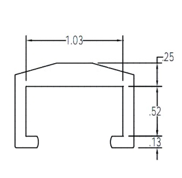 White UHMW Extrusion, code CV-381, "C" shape cover, for 1/4" x 2" flat bar used with aluminum guide bar CV-449.