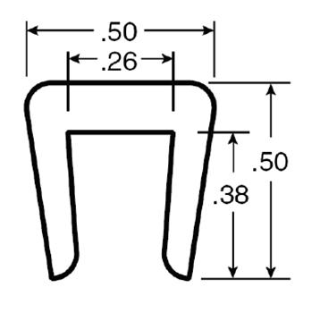 White UHMW Extrusion, code CV-380, "C" shape cover, for 1/2" x 1-1/2" flat bar