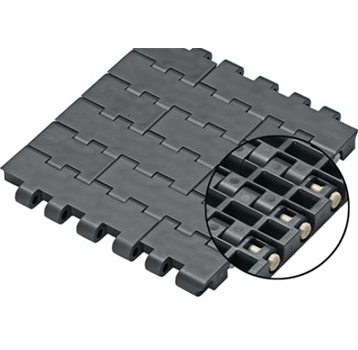 Courroies modulaire, utilisées sur convoyeur au déplacement en ligne droite ou à rayon, avec un pitch de 2.0".