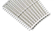 - Pour le convoyage courbe et rectiligne, idéale pour les spirales (facteur de réduction de 2,2) 55% de surface ajourée ; 85 % de surface de contact ouverte ; ouverture maximale de 15 x 17 mm (0,6" x 0,67")