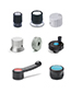 Une gamme complète de poignées Elesa est disponible sur demande, avec filet mâle ou femelle, filet impérial ou métrique, en acier plaqué zinc ou en acier inox. Communiquez avec nous pour plus de détails.