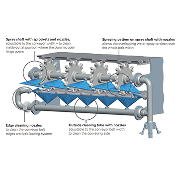 Courroies modulaire, utilisées sur convoyeur au déplacement en ligne droite ou à rayon, avec un pitch de 2.0".