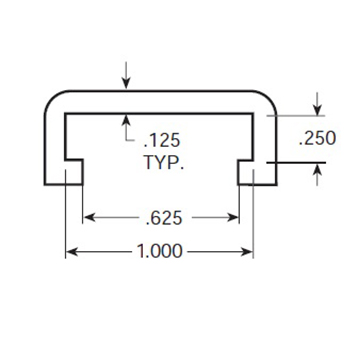 White UHMW wearstrip, code CV-431, C-shape, 1/4" x 1-1/2"