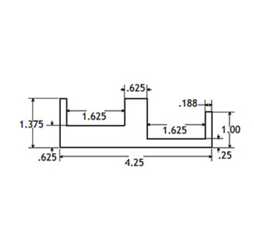 M-Shape profil in stainless steel, 537-689231, 0.30" thick x 1.575" wide