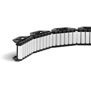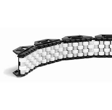 Courroies modulaire, utilisées sur convoyeur au déplacement en ligne droite ou à rayon, avec un pitch de 2.0".