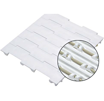 Courroies modulaire, utilisées sur convoyeur au déplacement en ligne droite ou à rayon, avec un pitch de 2.0".