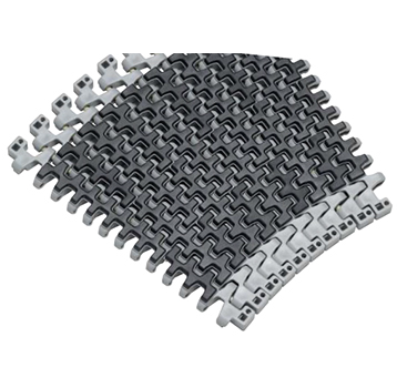 Courroies modulaire, utilisées sur convoyeur au déplacement en ligne droite ou à rayon, avec un pitch de 2.0".