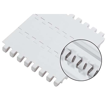 Courroies modulaire, utilisées sur convoyeur au déplacement en ligne droite ou à rayon, avec un pitch de 2.0".