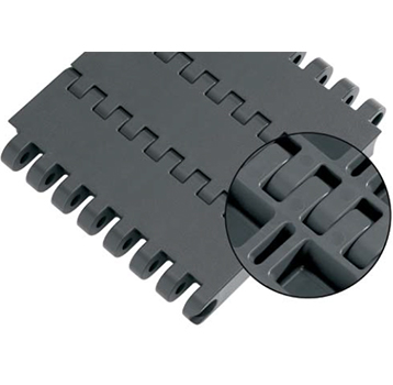 Courroies modulaire, utilisées sur convoyeur au déplacement en ligne droite ou à rayon, avec un pitch de 1".