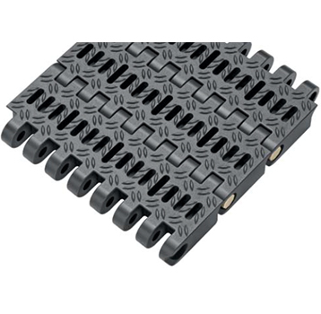 Courroies modulaire, utilisées sur convoyeur au déplacement en ligne droite ou à rayon, avec un pitch de 1.2".