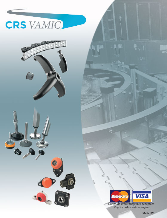 Contiens une liste complète de pièces, composantes, glissières, chaines, moteurs, accessoires de convoyeurs, supports, pieds articulés, rouleaux et encore plus! Téléchargez le maintenant.