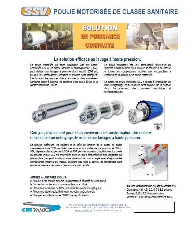 Détails sur les poulies motorisées de la série SSV. Téléchargez le maintenant.